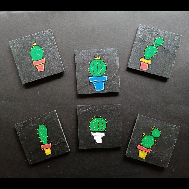 Set de 6 Dessous de Verre en Ardoise peints puis recouverts d'une couche de vernis alimentaire.